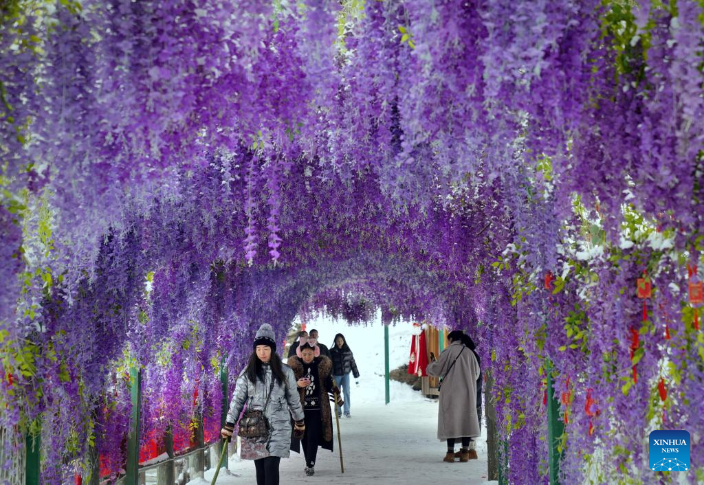 Tourists visit the Laojun Mountain scenic spot in Luanchuan County of Luoyang, central China's Henan Province, Feb. 23, 2023. Official data showed that the city saw 10.31 million trips in January of 2023, generating 6.28 billion yuan (about 902.44 million U.S. dollars) in revenue, up 746.63 percent and 690.06 percent year on year respectively. (Xinhua/Li An)