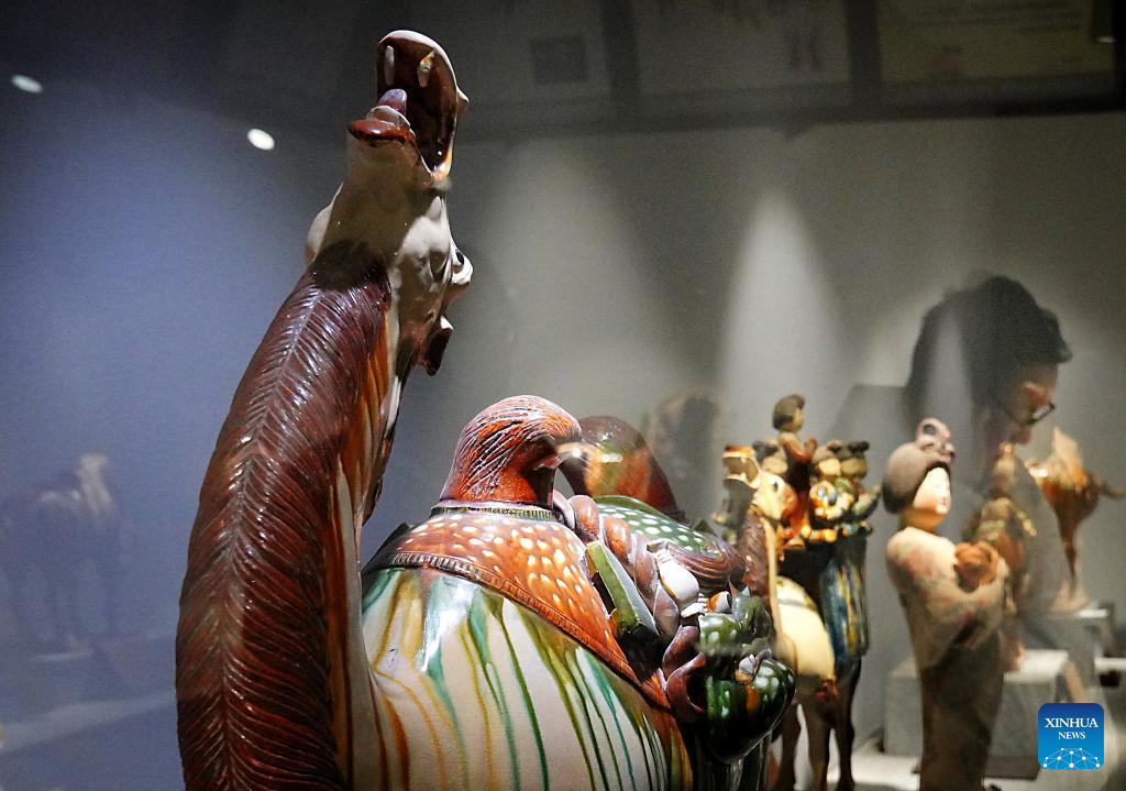 This photo taken on Feb. 22, 2023 shows exhibits in a shop at Luoyi ancient city in Luoyang, central China's Henan Province, Feb. 22, 2023. Official data showed that the city saw 10.31 million trips in January of 2023, generating 6.28 billion yuan (about 902.44 million U.S. dollars) in revenue, up 746.63 percent and 690.06 percent year on year respectively. (Xinhua/Li An)