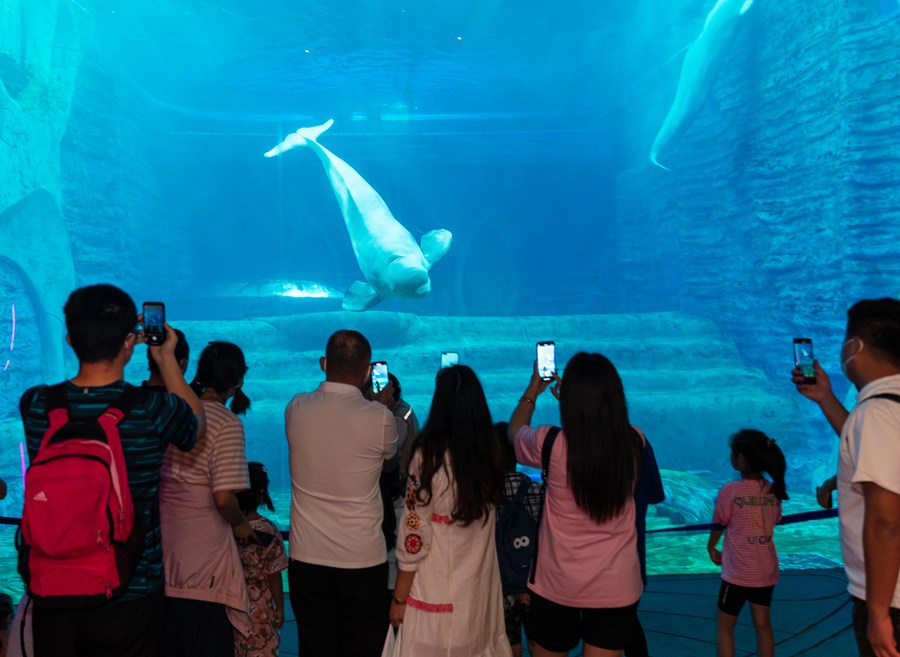 Tourists visit an aquarium in Atlantis Hotel in Sanya, south China's Hainan Province, Dec. 30, 2022. (Xinhua/Wang Xue)