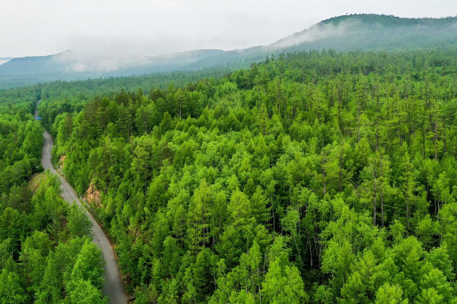 Aerial photo taken on June 12, 2022 shows the view of Mordaga National Forest Park in Hulun Buir, north China's Inner Mongolia Autonomous Region. (Xinhua/Li Zhipeng)