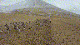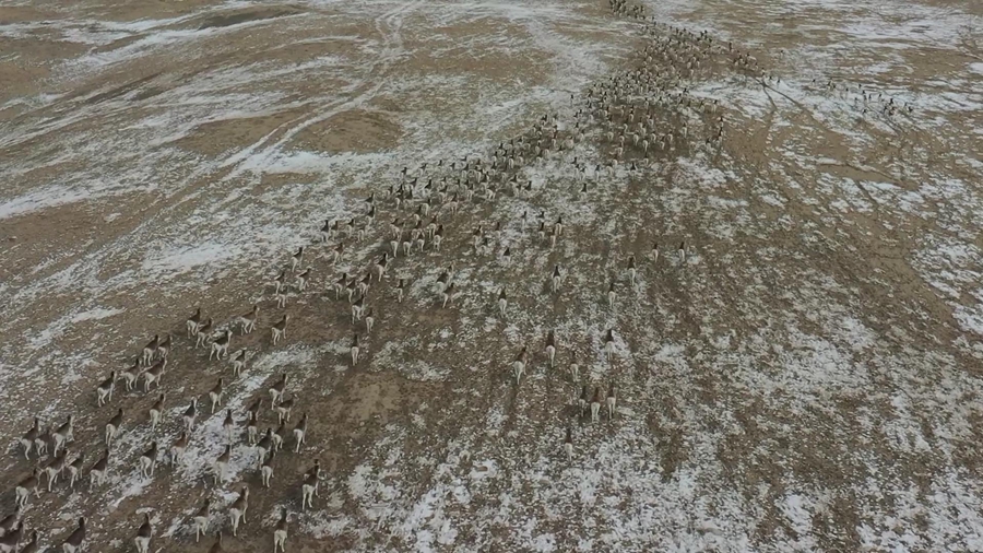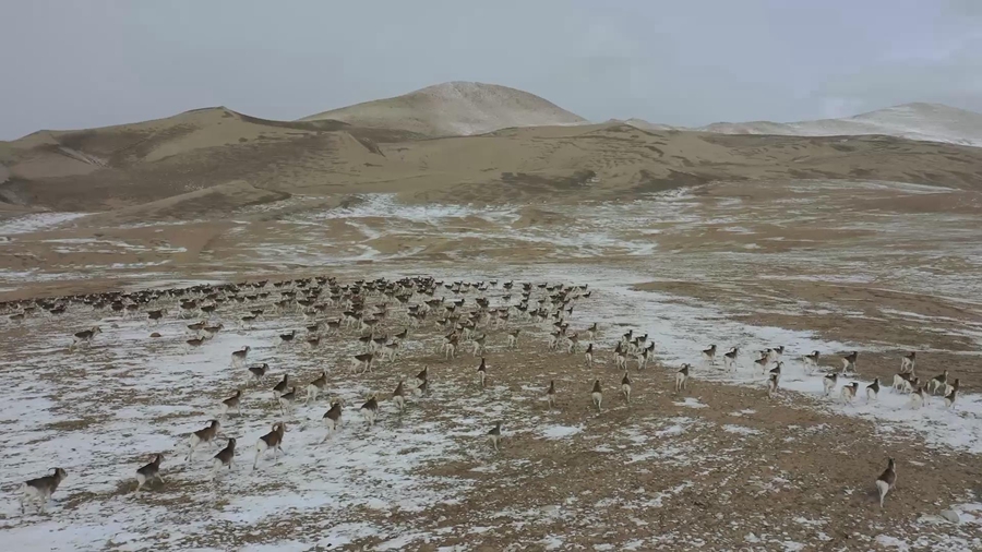 Over 1,000 Marco Polo sheep appeared in an untraversed region at an altitude of 4,300 meters on the Pamir Plateau, with some of them grazing and others galloping.