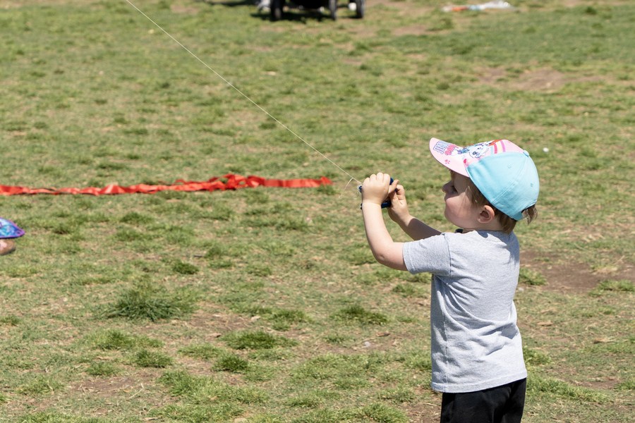 A child flies a kite during a kite festival in Austin, Texas, the United States, April 3, 2022. (Photo by Bo Lee/Xinhua)