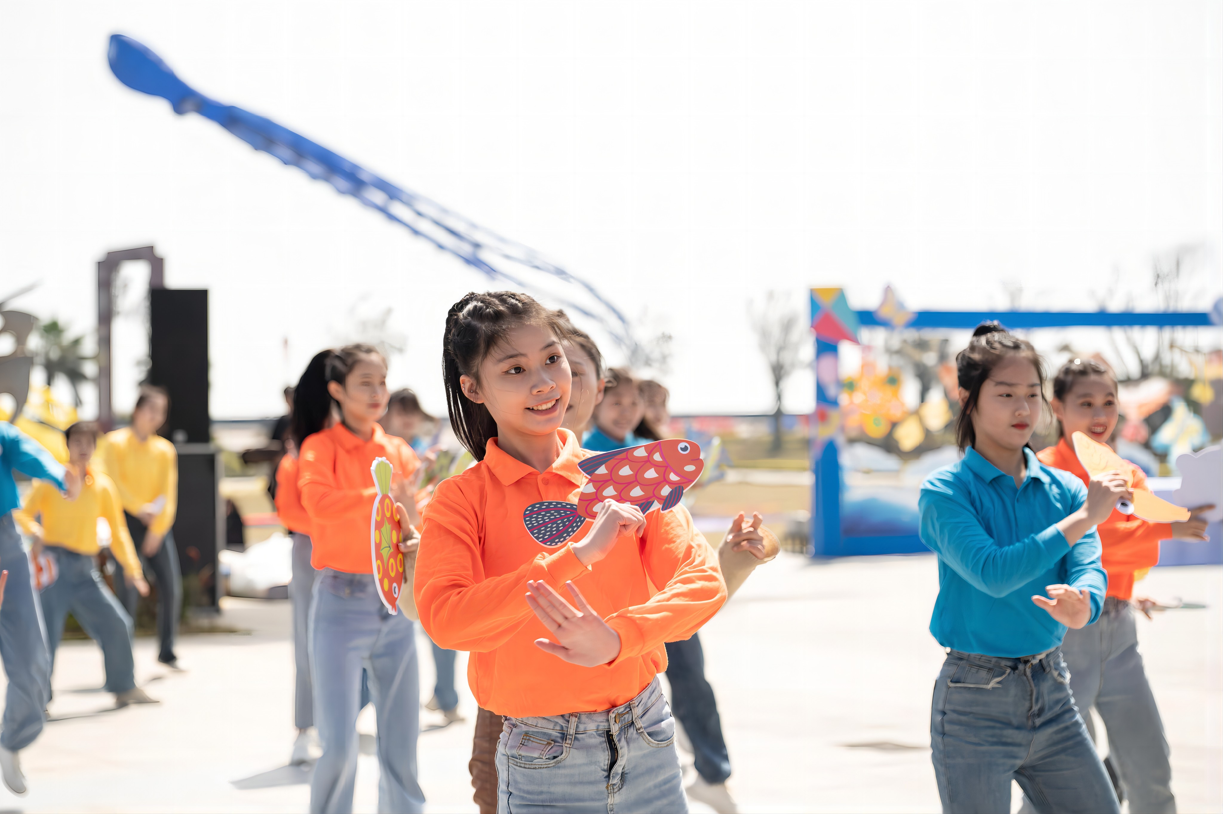 Teenagers dance under a sky decorated with colorful kites at a park in Shantou, south China’s Guangdong Province. (Photo/Sun Jianwu)