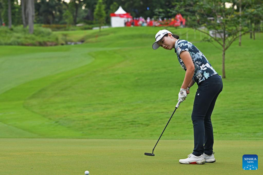 Lin Xiyu of China competes on the first day of the HSBC Women's World Championship held at Singapore's Sentosa Golf Club on March 2, 2023. (Photo by Then Chih Wey/Xinhua)