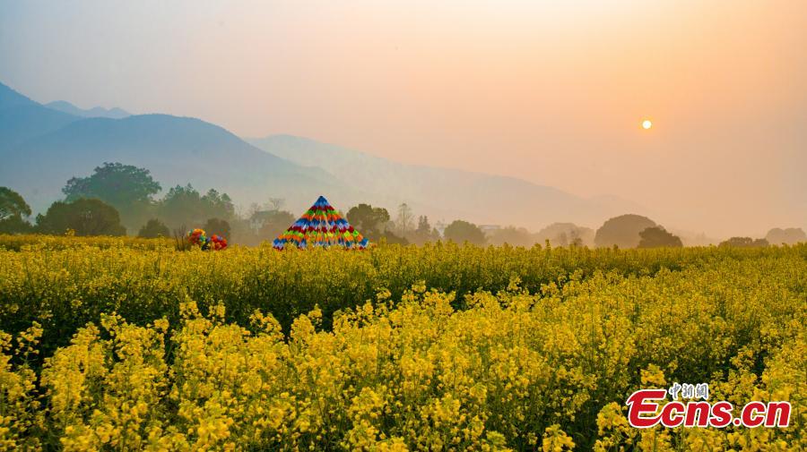 Blooming cole flowers attract visitors in Ji'an, east China's Jiangxi Province. (Photo: China News Service/Li Xiaoming)