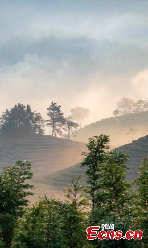 A tea garden in Wuyishan National Park is shrouded by morning mist in east China's Fujian Province, March 1, 2023. (Photo: China News Service/Zheng Guohu)