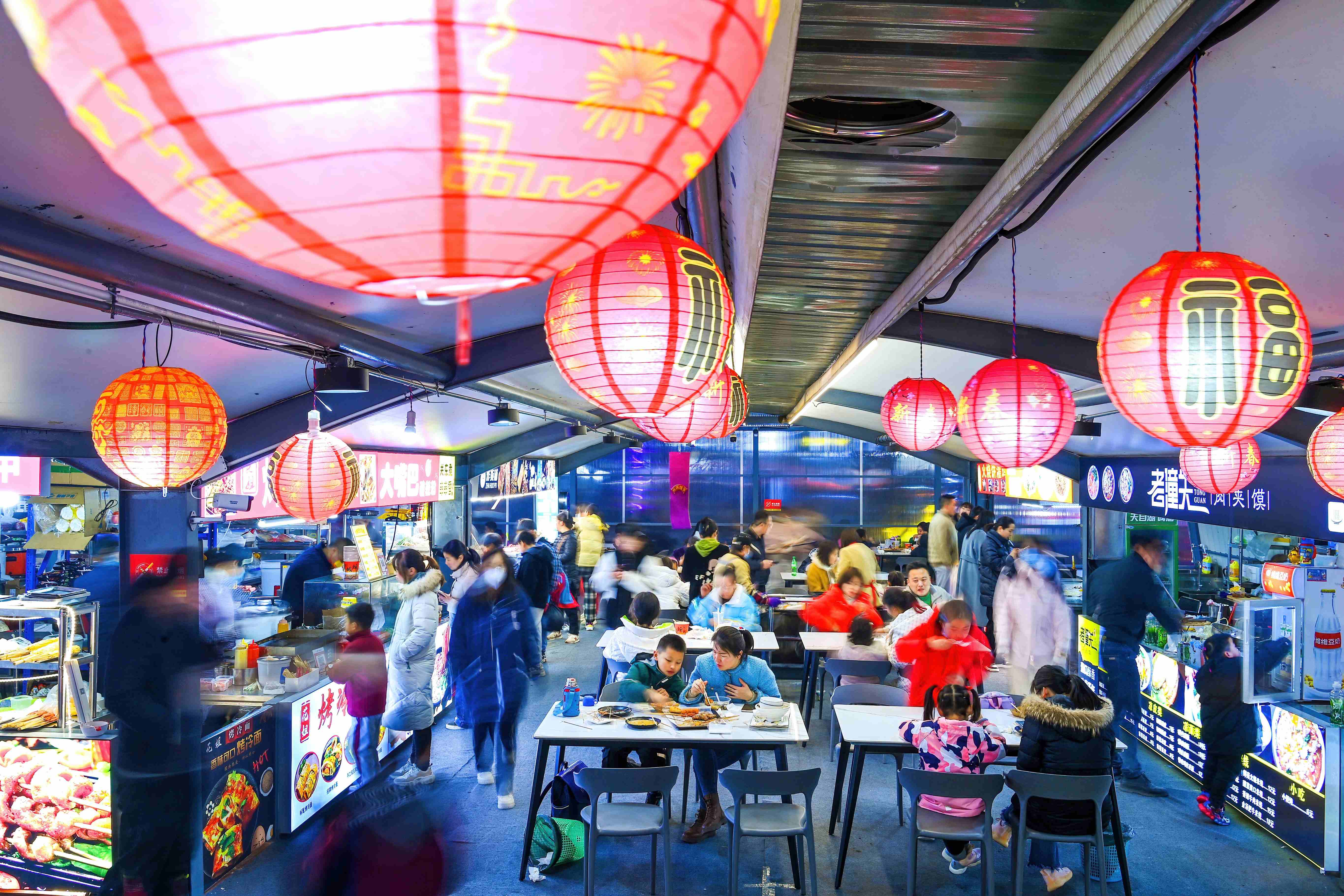 Photo taken on Feb. 24, 2023 shows a lively night market in Sucheng district, Suqian, east China's Jiangsu province. (People's Daily Online/Chen Shaoshuai)