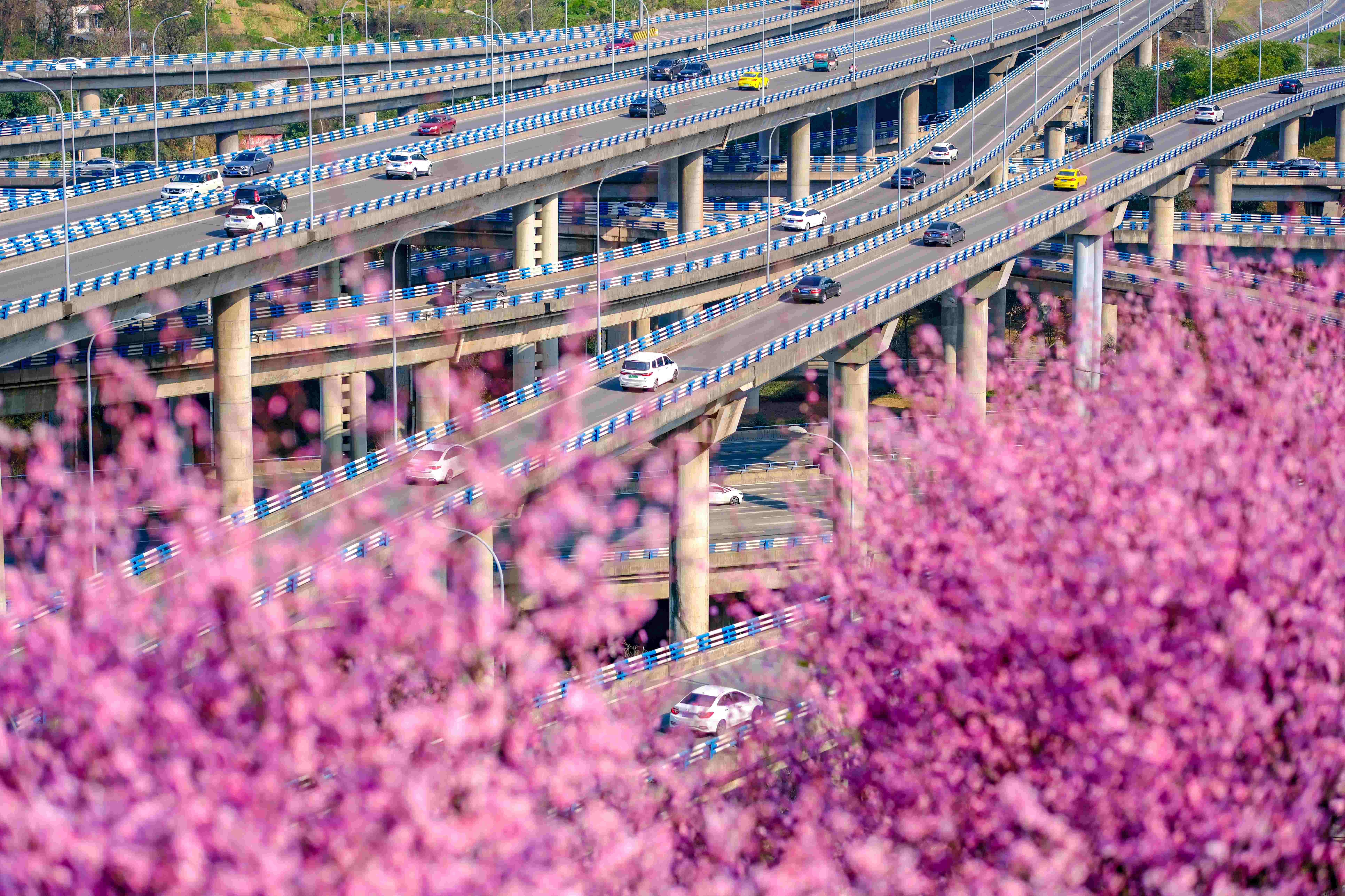 Photo taken on Feb. 26, 2023 shows blireana blossoming near an interchange in Nan'an district, southwest China's Chongqing municipality. (People's Daily Online/Guo Xu)