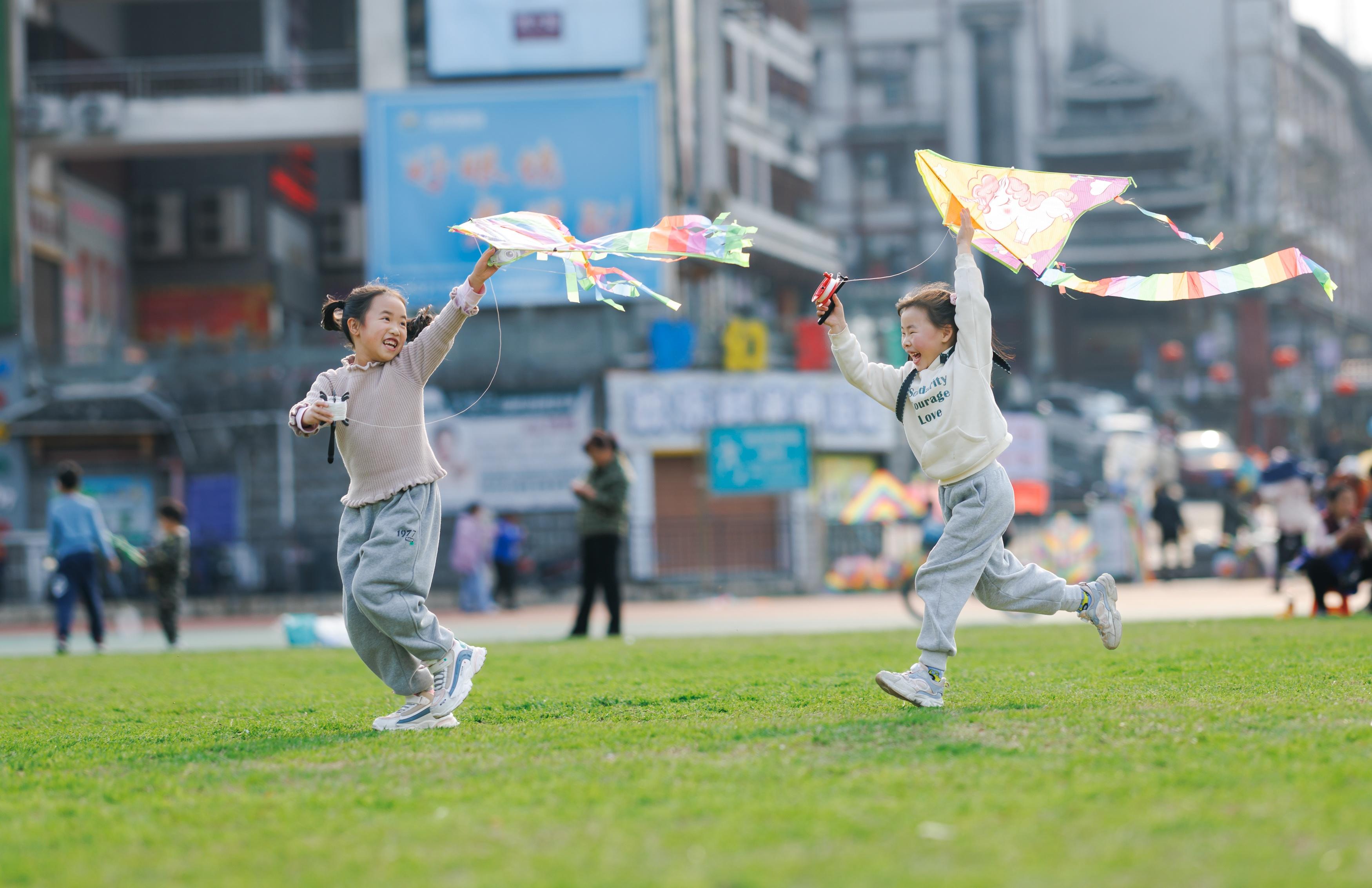 Children fly kites on a square in Tongdao Dong autonomous county, central China's Hunan province, Feb. 19, 2023. (People's Daily Online/Su Yongzhu)