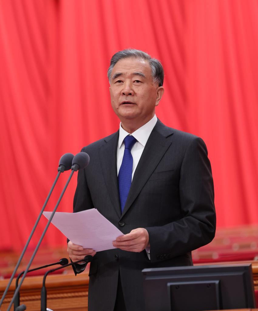 Wang Huning, who presides over a presidium meeting of the first session of the 14th National Committee of the Chinese People's Political Consultative Conference (CPPCC), walks to the rostrum during a preparatory meeting for the first session of the 14th CPPCC National Committee at the Great Hall of the People in Beijing, capital of China, March 3, 2023. (Xinhua/Wang Ye)