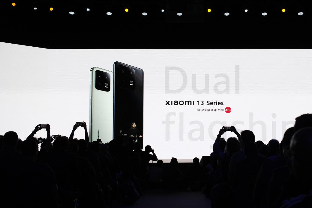 This photo taken on Feb. 26, 2023 shows the new products launch event of Chinese tech firm Xiaomi in Barcelona, Spain. (Xinhua/Meng Dingbo)