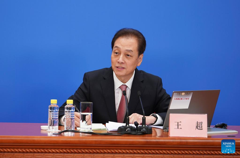 Wang Chao, spokesperson for the first session of the 14th National People's Congress (NPC), attends a press conference at the Great Hall of the People in Beijing, capital of China, March 4, 2023. The NPC, China's national legislature, held a press conference Saturday, one day before the opening of its annual session. (Xinhua/Xing Guangli)