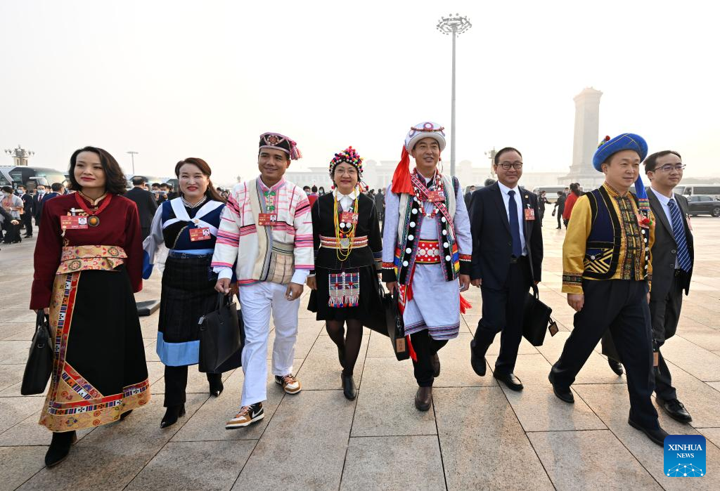 Deputies to the 14th National People's Congress (NPC) walk towards the Great Hall of the People for the opening meeting of the first session of the 14th NPC in Beijing, capital of China, March 5, 2023. The 14th NPC, China's national legislature, opened its first session Sunday morning here in Beijing. (Xinhua/Chen Yehua)