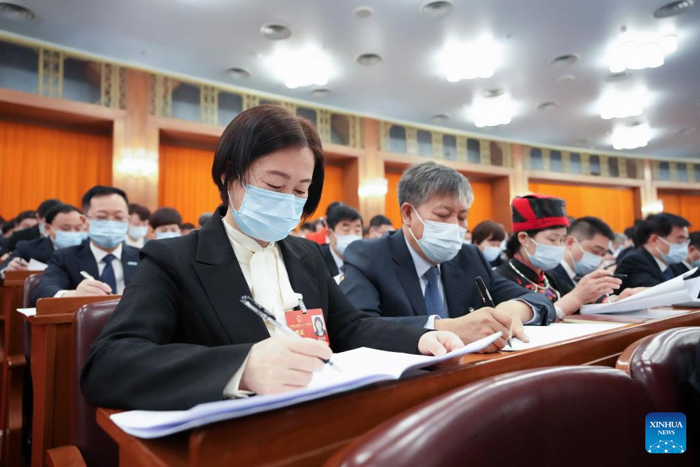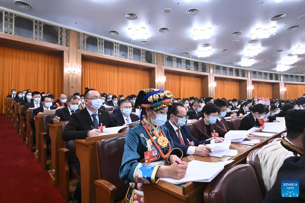 Deputies attend the opening meeting of the first session of the 14th National People's Congress (NPC) at the Great Hall of the People in Beijing, capital of China, March 5, 2023. (Xinhua/Li Xin)