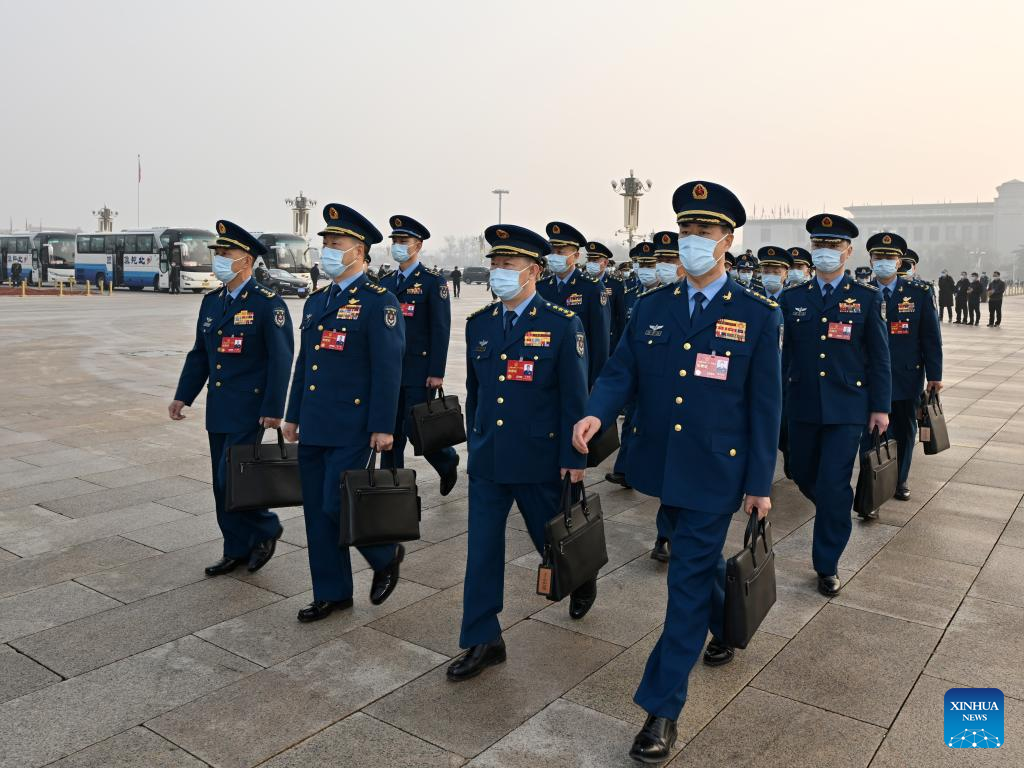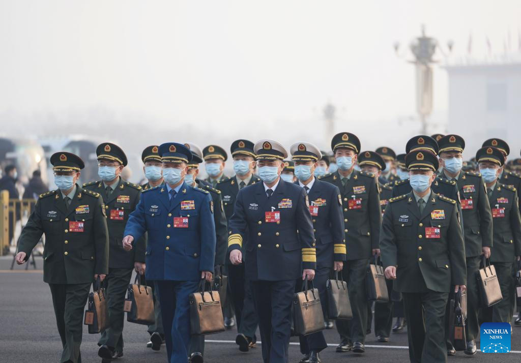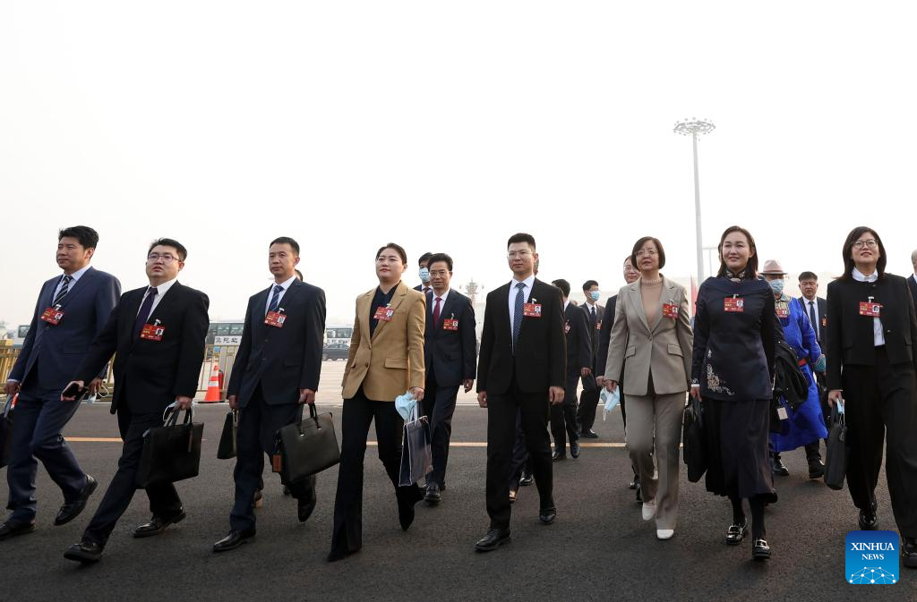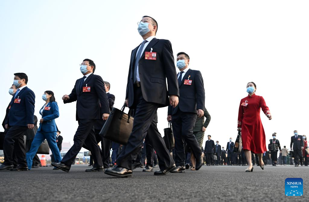 Deputies to the 14th National People's Congress (NPC) walk towards the Great Hall of the People for the opening meeting of the first session of the 14th NPC in Beijing, capital of China, March 5, 2023. The 14th NPC, China's national legislature, opened its first session Sunday morning here in Beijing. (Xinhua/Cao Can)