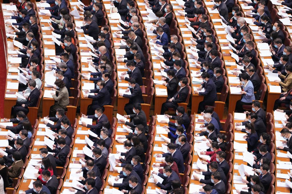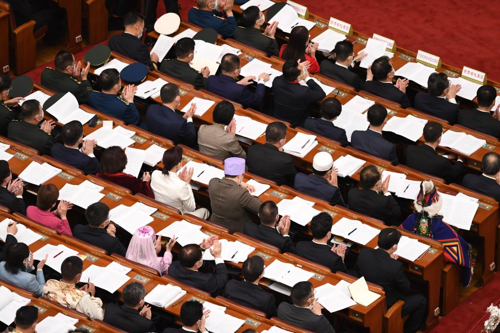 Deputies attend the opening meeting of the first session of the 14th National People's Congress (NPC) at the Great Hall of the People in Beijing, capital of China, March 5, 2023. (Xinhua/Wang Yuguo)