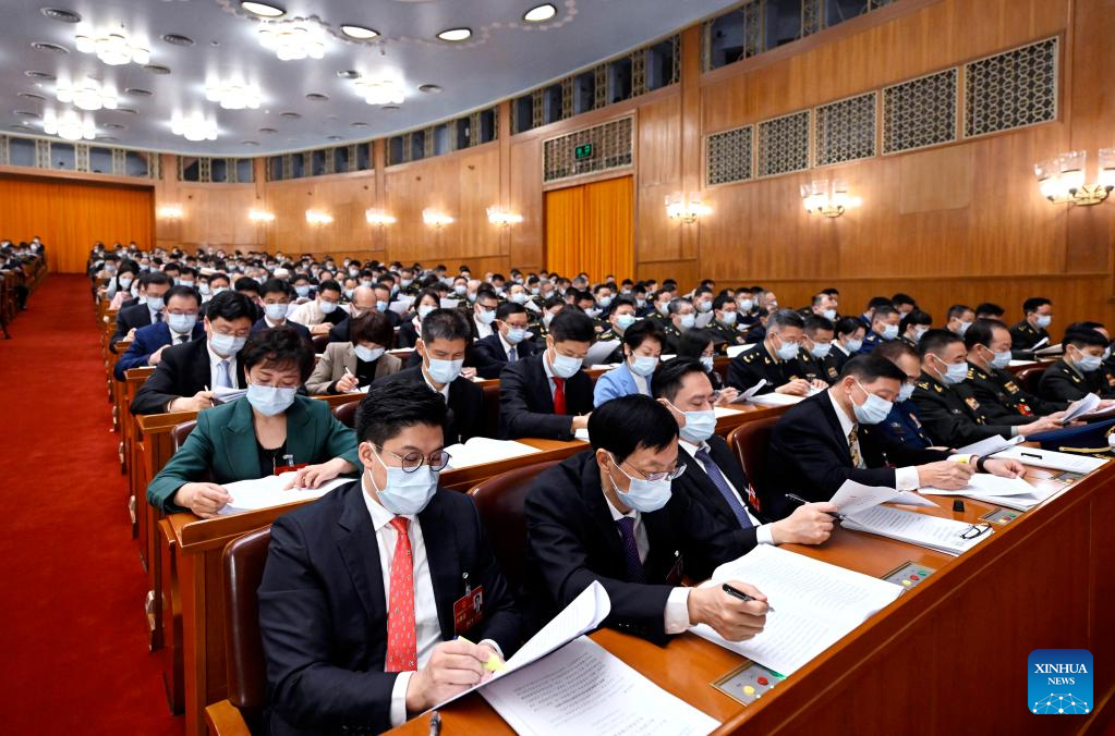 The opening meeting of the first session of the 14th National People's Congress (NPC) is held at the Great Hall of the People in Beijing, capital of China, March 5, 2023. (Xinhua/Huang Jingwen)