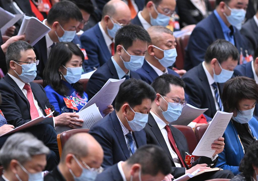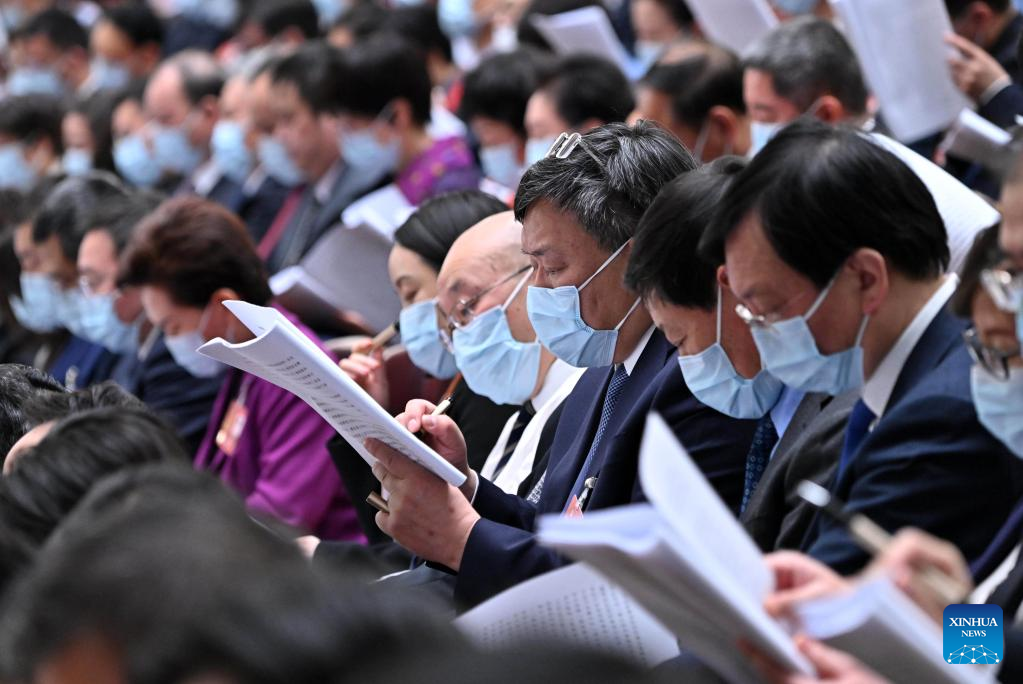 Members of the National Committee of the Chinese People's Political Consultative Conference (CPPCC) sit in on the opening meeting of the first session of the 14th National People's Congress (NPC) as non-voting participants at the Great Hall of the People in Beijing, capital of China, March 5, 2023. (Xinhua/Li Xin)