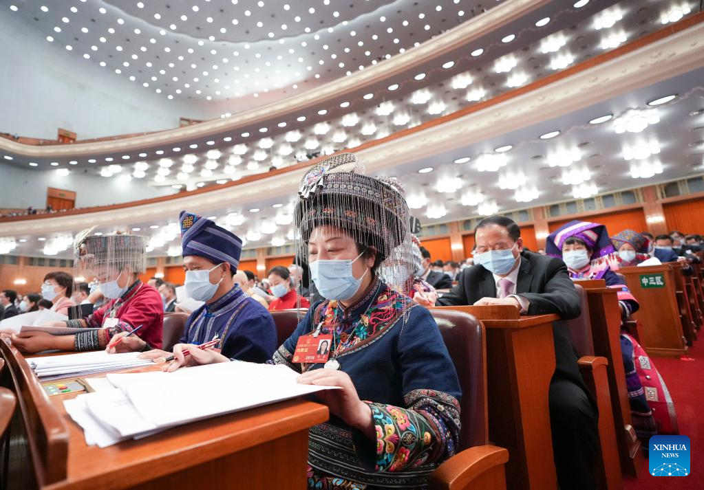 Lawmakers voted to adopt a decision on establishing 10 special committees of the 14th NPC and a voting method for chairpersons, vice chairpersons and members of the special committees.