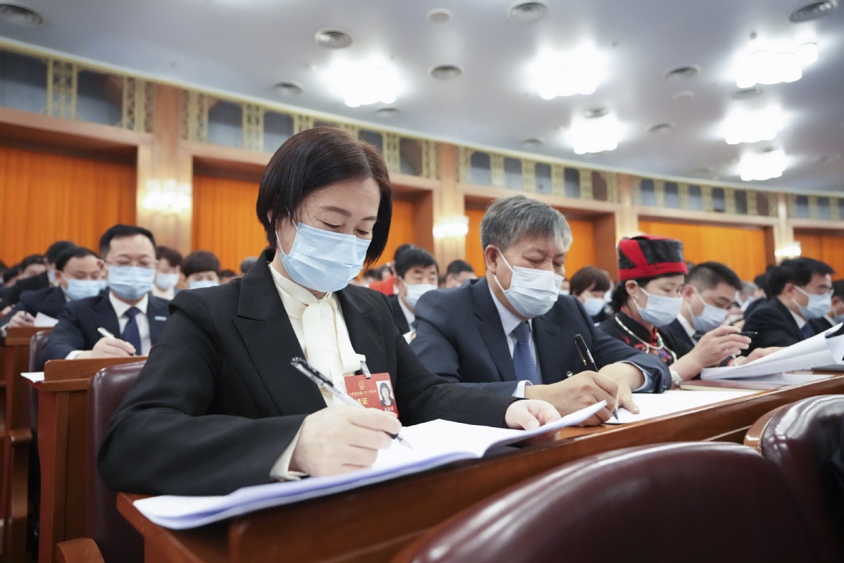 The opening meeting of the first session of the 14th National People's Congress (NPC) is held at the Great Hall of the People in Beijing, March 5, 2023. [Photo/Xinhua]