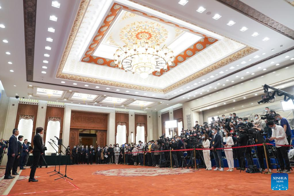 Deputies to the 14th National People's Congress (NPC) are interviewed ahead of the opening meeting of the first session of the 14th NPC in Beijing, capital of China, March 5, 2023. (Xinhua/Liu Jinhai)