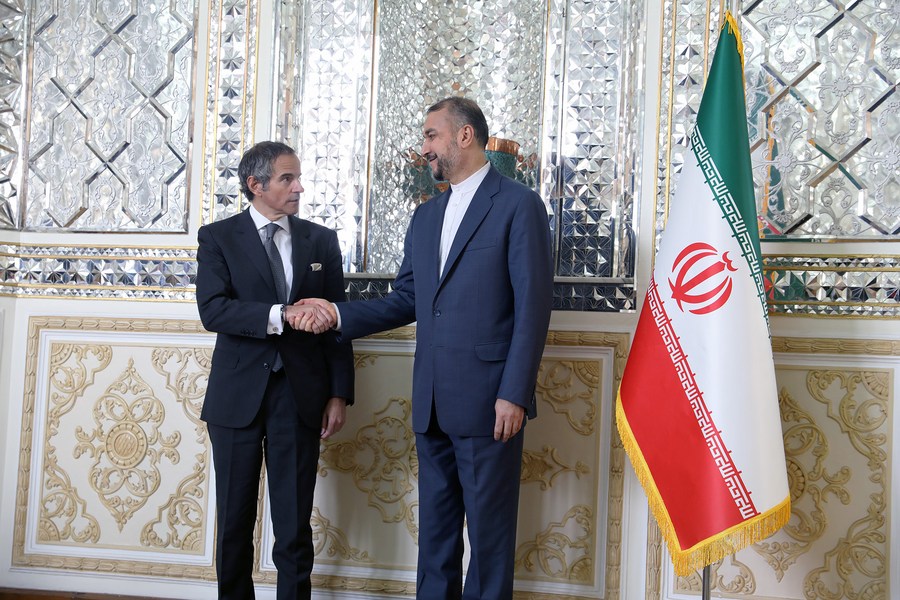 Iranian Foreign Minister Hossein Amir-Abdollahian meets with IAEA Director General Rafael Grossi in Tehran, Iran, March 4, 2023. (Iranian Foreign Ministry/Handout via Xinhua)