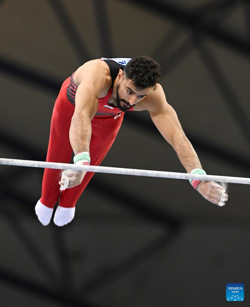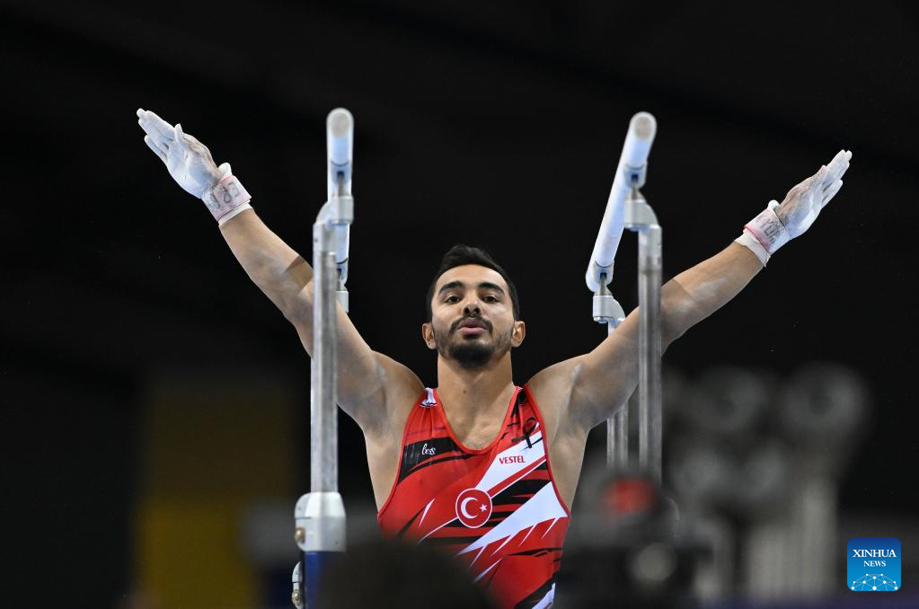 Ferhat Arican of Trkiye competes during the parallel bars final at the 15th FIG Artistic Gymnastics World Cup in Doha, Qatar, March 4, 2023. (Photo by Nikku/Xinhua)
