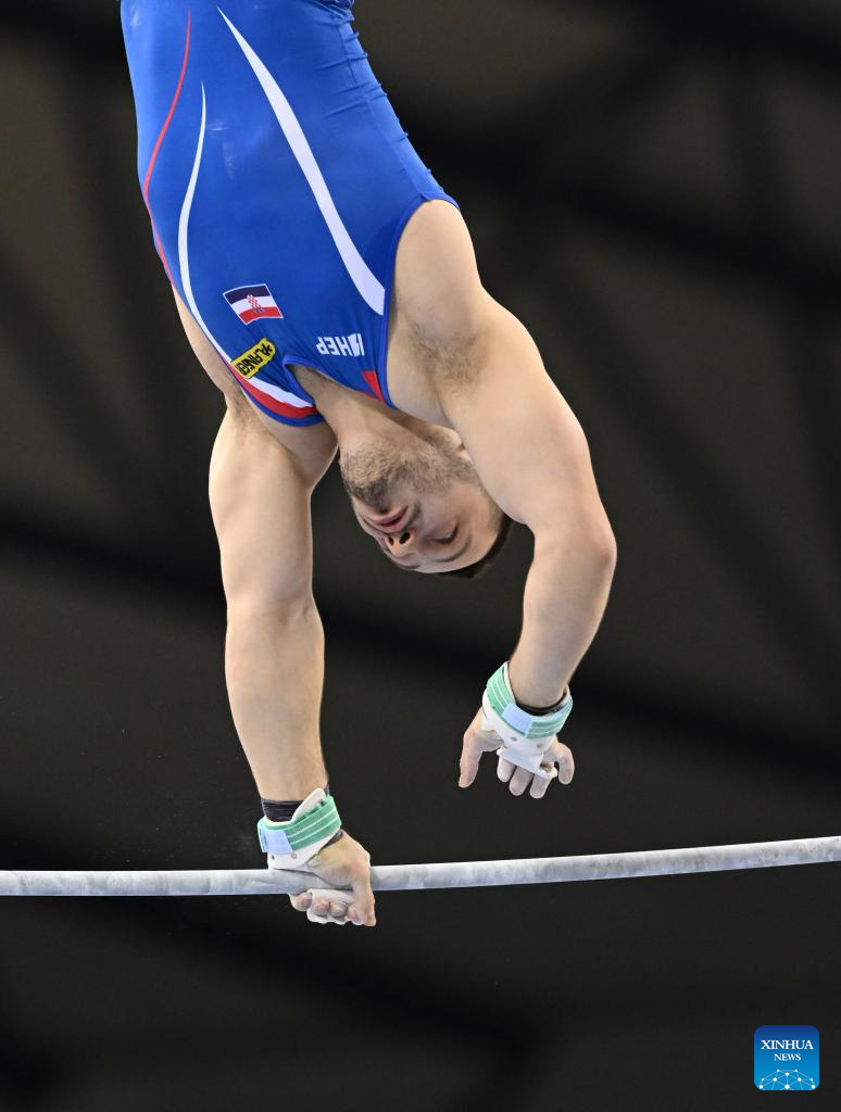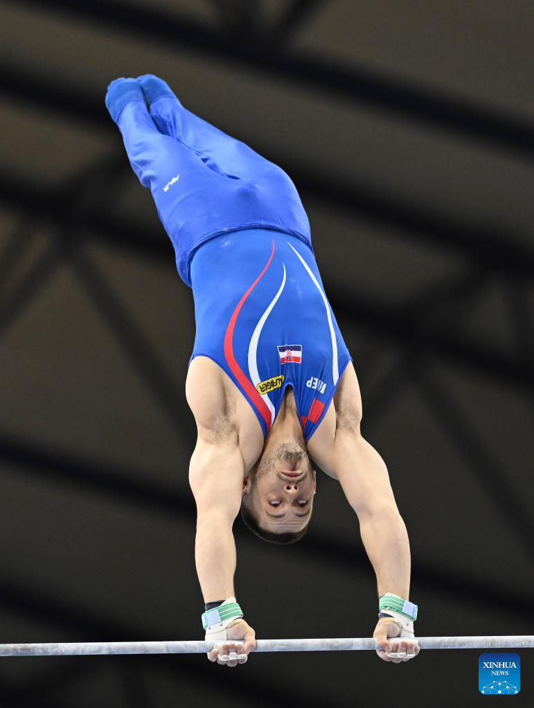 Tin Srbic of Croatia competes during the horizontal bar final at the 15th FIG Artistic Gymnastics World Cup in Doha, Qatar, March 4, 2023. (Photo by Nikku/Xinhua)