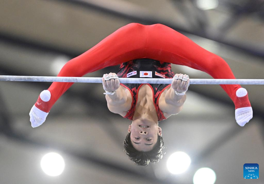Kamoto Yuya of Japan competes during the horizontal bar final at the 15th FIG Artistic Gymnastics World Cup in Doha, Qatar, March 4, 2023. (Photo by Nikku/Xinhua)