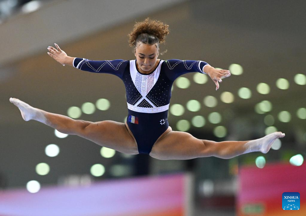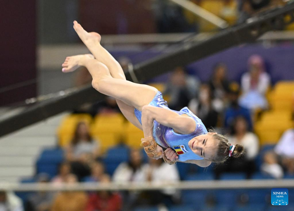 Sabrina Maneca-Voinea of Romania competes during the women's balance beam final at the 15th FIG Artistic Gymnastics World Cup in Doha, Qatar, March 4, 2023. (Photo by Nikku/Xinhua)