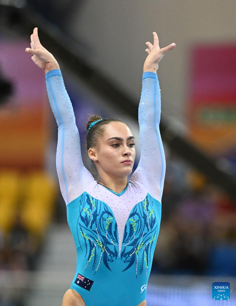 Breanna Scott of Australia competes during the women's floor exercise final at the 15th FIG Artistic Gymnastics World Cup in Doha, Qatar, March 4, 2023. (Photo by Nikku/Xinhua)