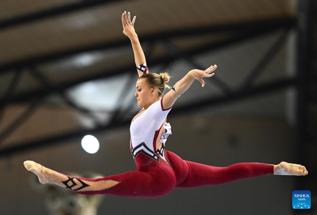 Sabrina Maneca-Voinea of Romania competes during the women's floor exercise final at the 15th FIG Artistic Gymnastics World Cup in Doha, Qatar, March 4, 2023. (Photo by Nikku/Xinhua)