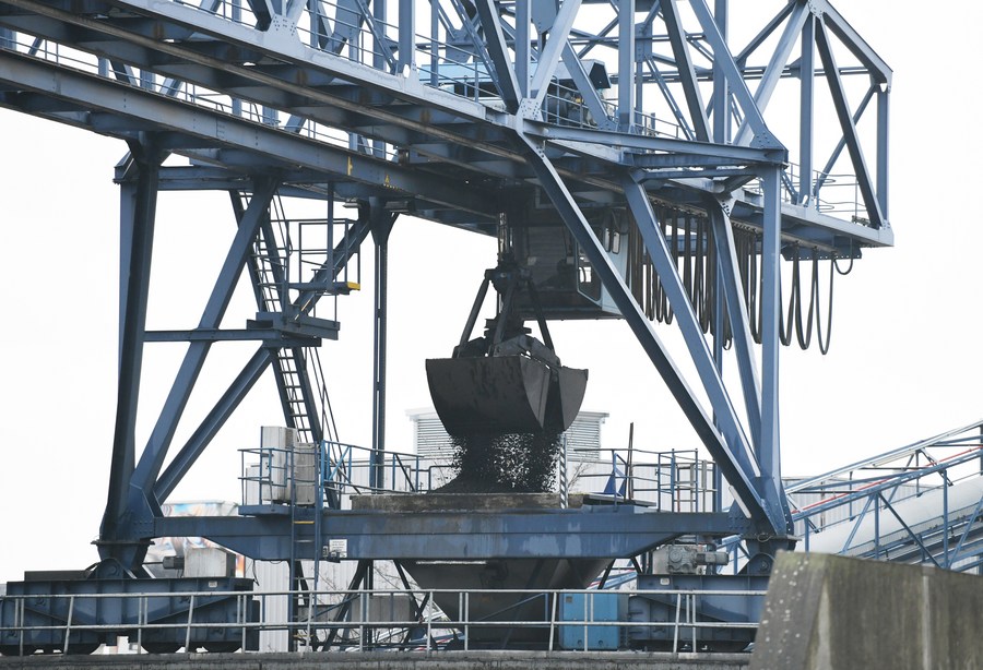 Loading equipment operates at a coal yard of a thermal power plant in Berlin, Germany, Jan. 9, 2023. (Xinhua/Ren Pengfei)