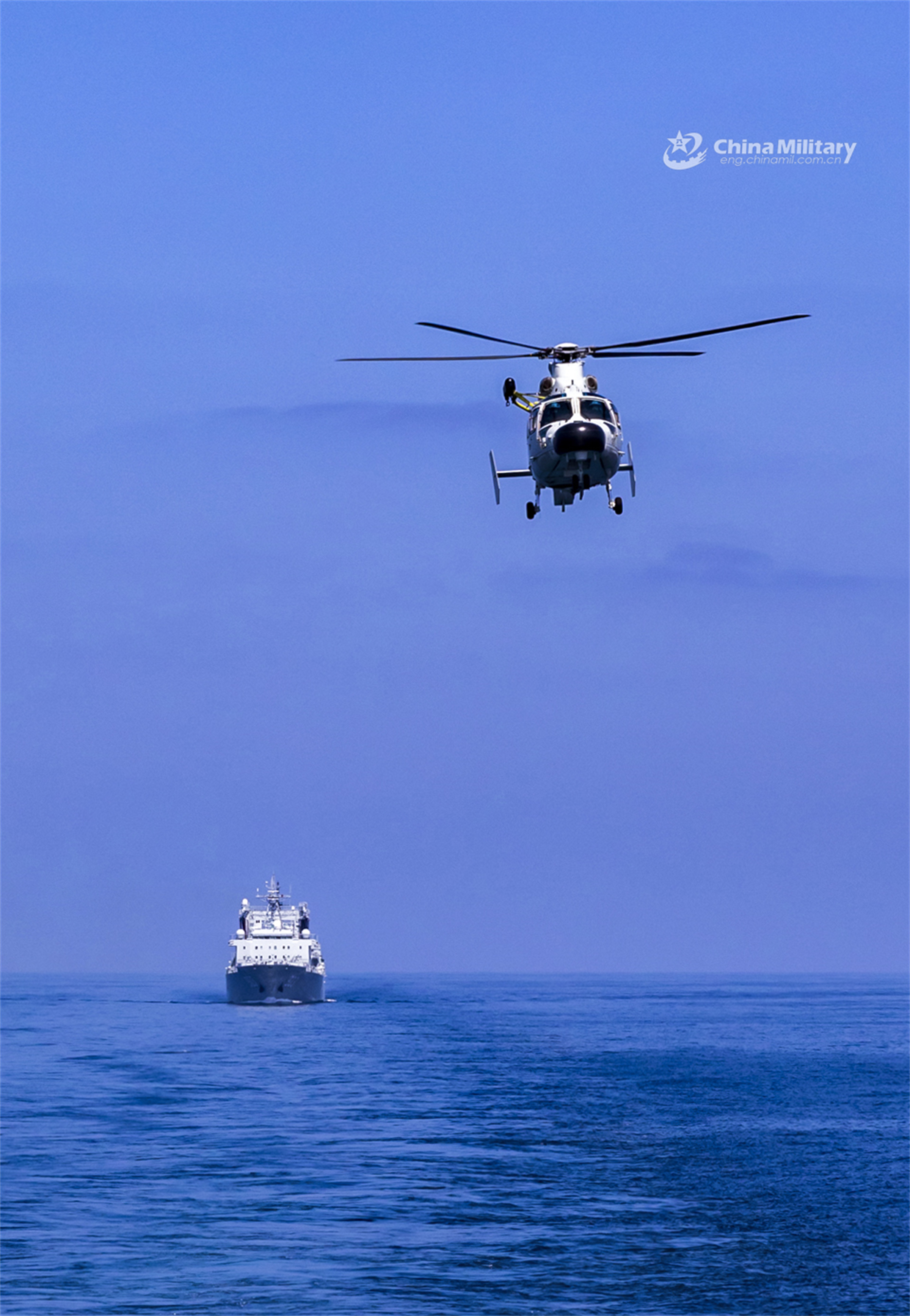 A ship-borne helicopter attached to the 42nd Chinese naval escort taskforce heads for patrol area during a comprehensive training exercise on February 3, 2023. (eng.chinamil.com.cn/Photo by Ma Yubin)