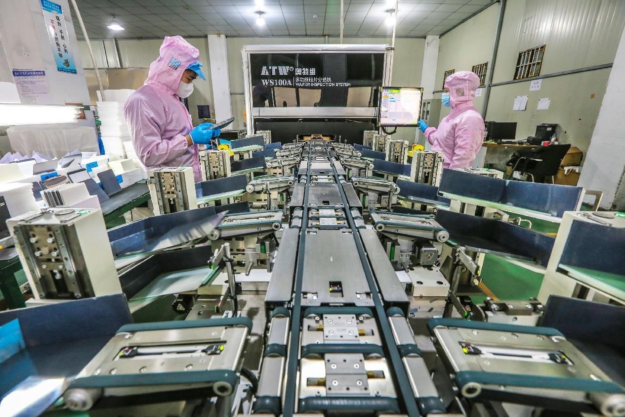 Photovoltaic products are manufactured in a workshop of a new energy company in Ma'anshan, east China's Anhui province. (People's Daily Online/Wang Wensheng)