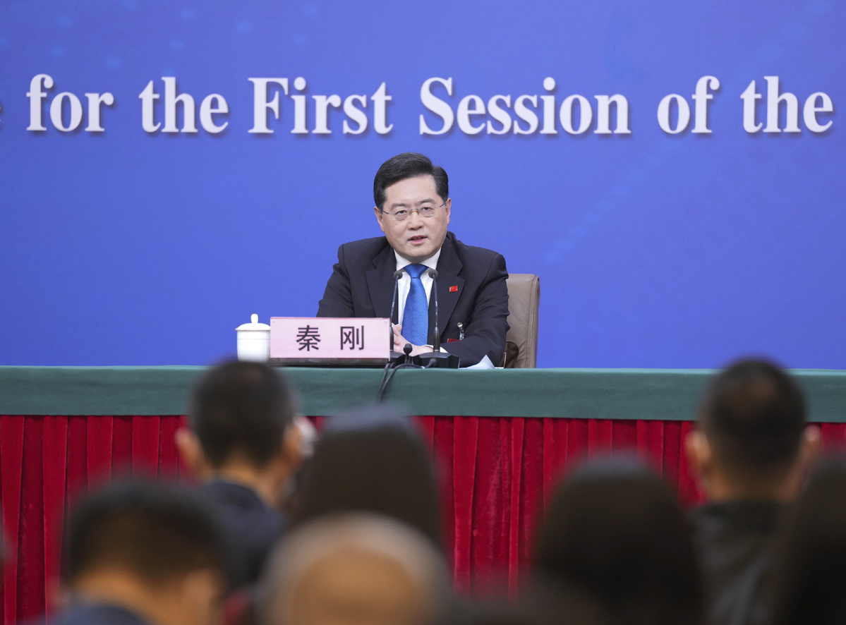 Foreign Minister Qin Gang speaks at a news conference during the first session of the 14th National People's Congress in Beijing, March 7, 2023. [Photo/Xinhua]