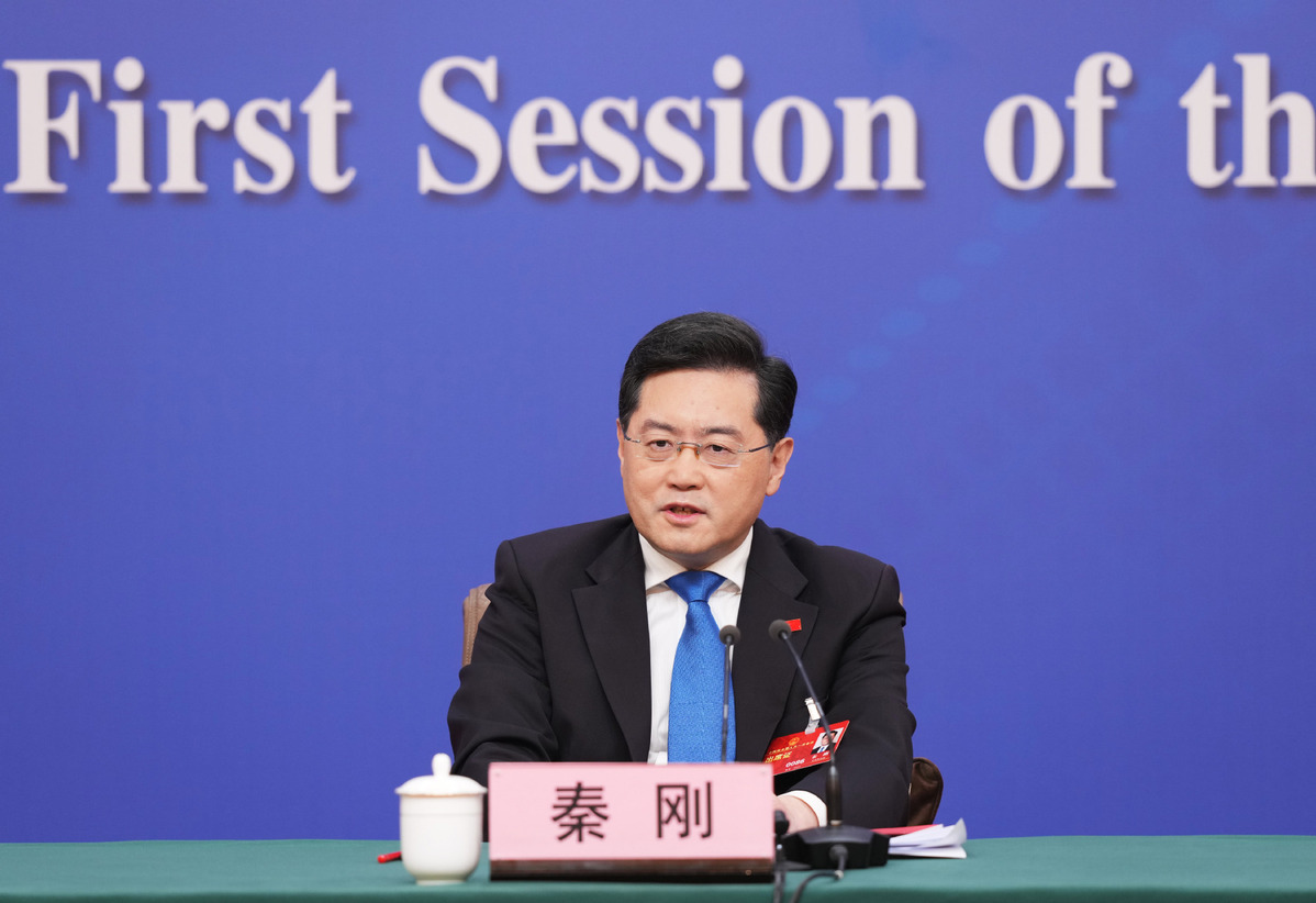 Foreign Minister Qin Gang speaks at a news conference during the first session of the 14th National People's Congress in Beijing, March 7, 2023. [Photo/Xinhua]
