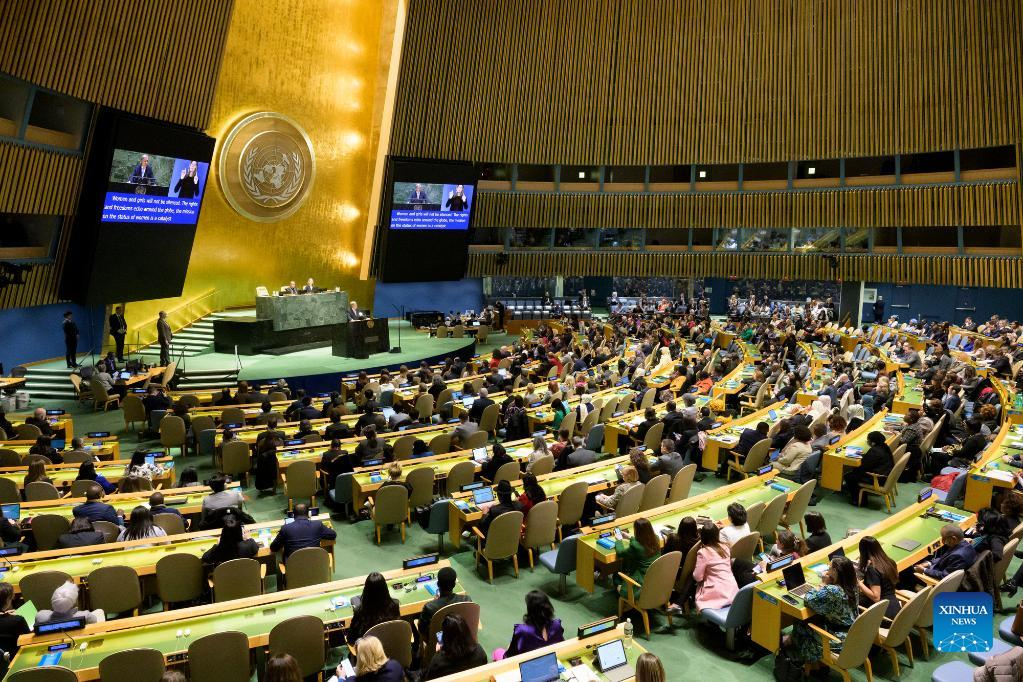 UN Secretary-General Antonio Guterres addresses the opening of the 67th session of the UN Commission on the Status of Women at the UN headquarters in New York, on March 6, 2023. Guterres on Monday called for actions to close gender gaps in science, technology and innovation, saying women's full contributions will benefit all. (Manuel Elas/UN Photo/Handout via Xinhua)