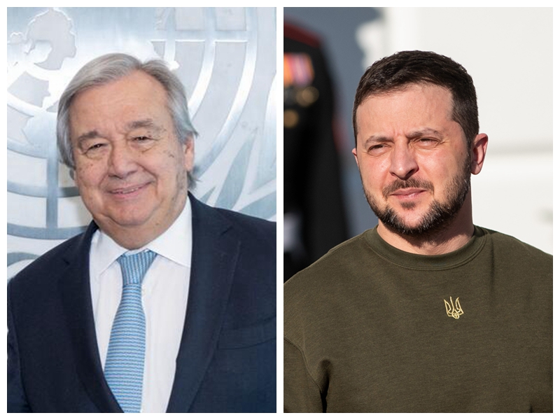 Combo photo of UN Secretary-General Antonio Guterres (L) and Ukrainian President Volodymyr Zelensky. (Xinhua)