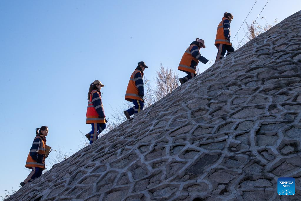 Female inspectors work along the Binzhou railway line in Daqing, northeast China's Heilongjiang Province, March 6, 2023. (Xinhua/Zhang Tao)