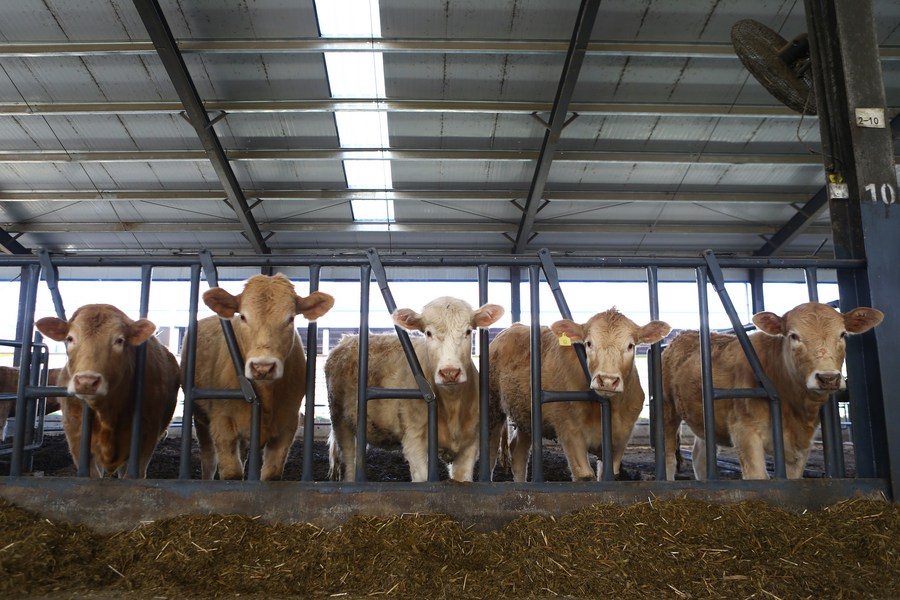 Xianan cattle are seen at a Xianan cattle farm in Biyang County of Zhumadian, central China's Henan Province, Jan. 13, 2021. (Xinhua/Xu Yanan)