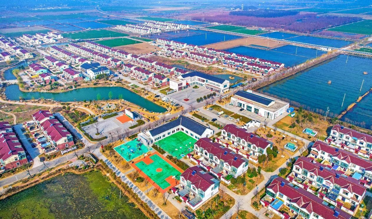 Photo taken on March 6, 2023 shows rows of houses neatly built in Zhenyou community, Xinzhuang township, Suyu district, Suqian, east China's Jiangsu province. (People's Daily Online/Chen Shaoshuai)