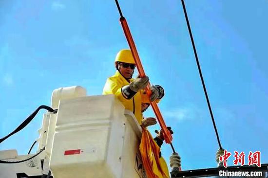 Zhaxi Nyima is repairing electricity failure. (Photo provided from Zhaxi Nyima)
