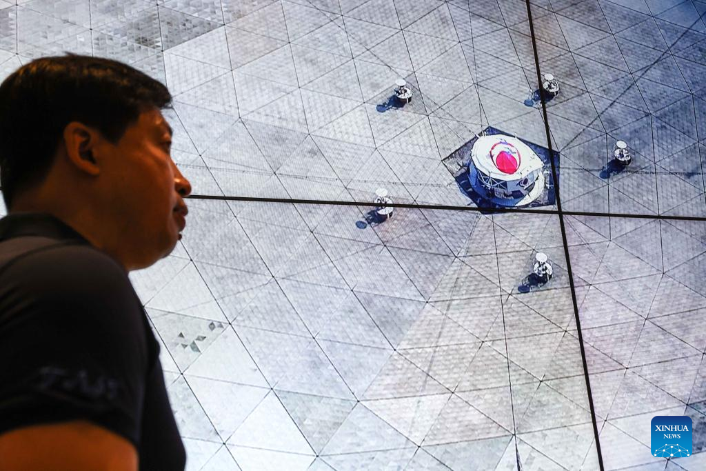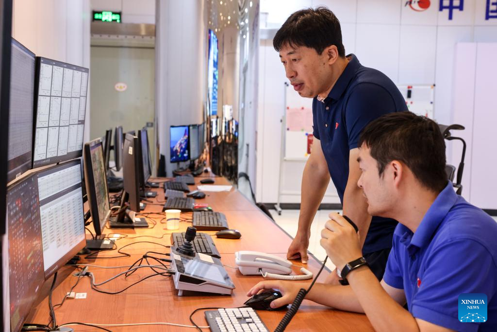 Jiang Peng is seen at the control room of FAST during its maintenance period in Pingtang County, southwest China's Guizhou Province, Aug. 25, 2022. China's Five-hundred-meter Aperture Spherical Radio Telescope (FAST), the world's largest single-dish radio telescope, is located in Pingtang County of southwest China's Guizhou Province. Jiang Peng, a deputy to the 14th National People's Congress (NPC) and chief engineer of the FAST, fulfilled the adjusting mission of the telescope with his team members and made its comprehensive capability reach the world's leading level. (Xinhua/Ou Dongqu)