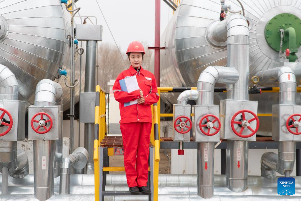 Gas worker Wang Chaobo is pictured at a working area of Daqing Oilfield in Daqing, northeast China's Heilongjiang Province, March 7, 2023. (Xinhua/Zhang Tao)