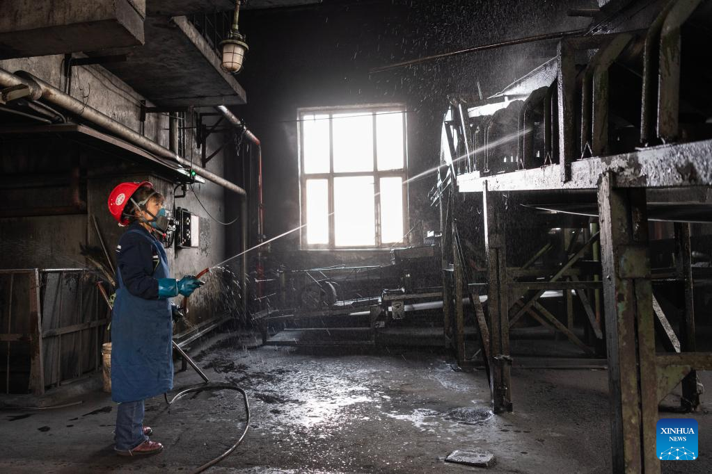 Worker Qiu Yumin works at a coking plant in Qitaihe, northeast China's Heilongjiang Province, March 7, 2023. (Xinhua/Xie Jianfei)