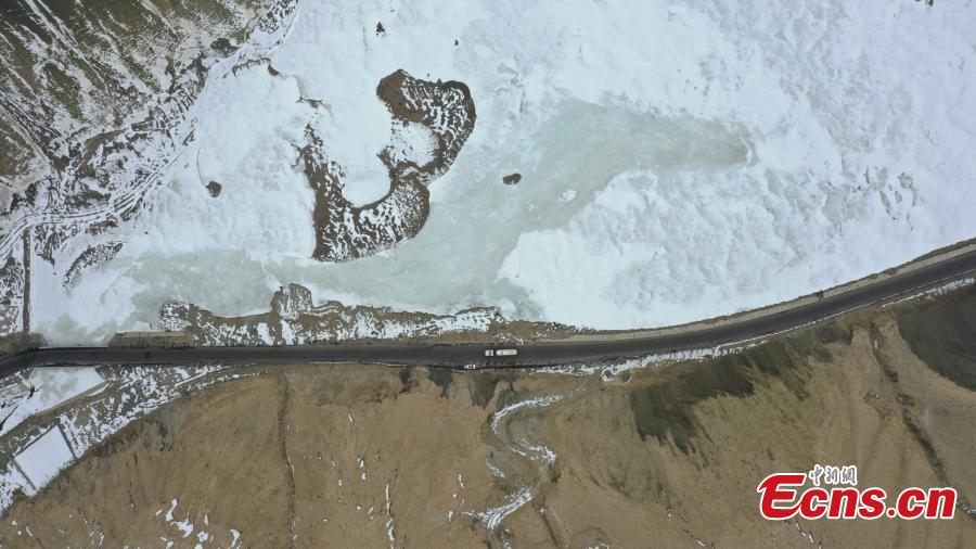 Aerial view shows the Xinjiang-Tibet Highway passing through mountains. As one of the world's highest motorable roads, Xinjiang-Tibet Highway, or China National Highway 219, connects northwest China's Xinjiang Uygur Autonomous Region and southwest China's Tibet Autonomous Region with an average altitude of over 4,500 meters. (Photo: China News Service/Sun Tingwen)