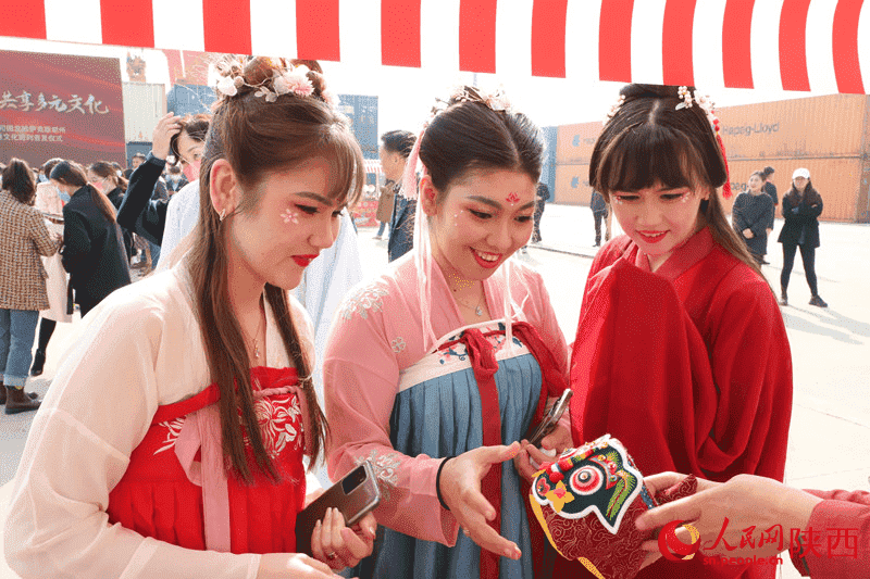 Kazakhstani international students attend the cultural freight train departure ceremony in Xi'an, northwest China’s Shaanxi Province, on Mar. 7, 2023. (Photo/Li Zhiqiang)