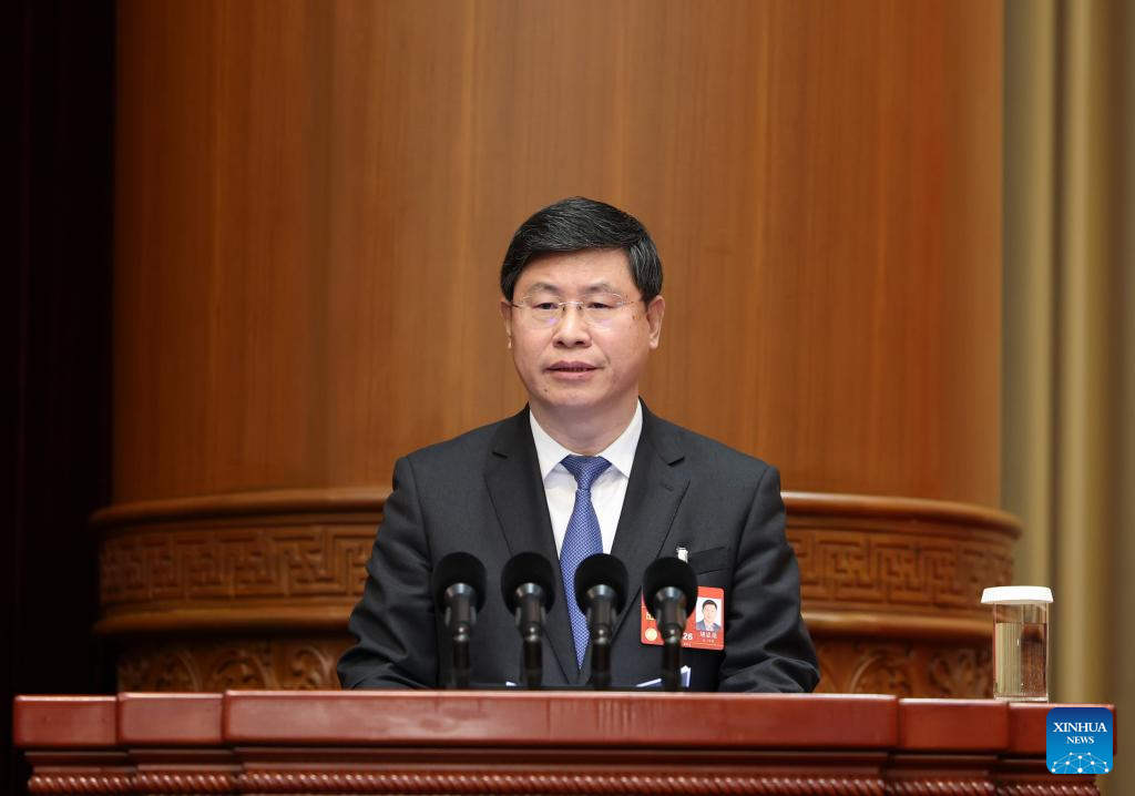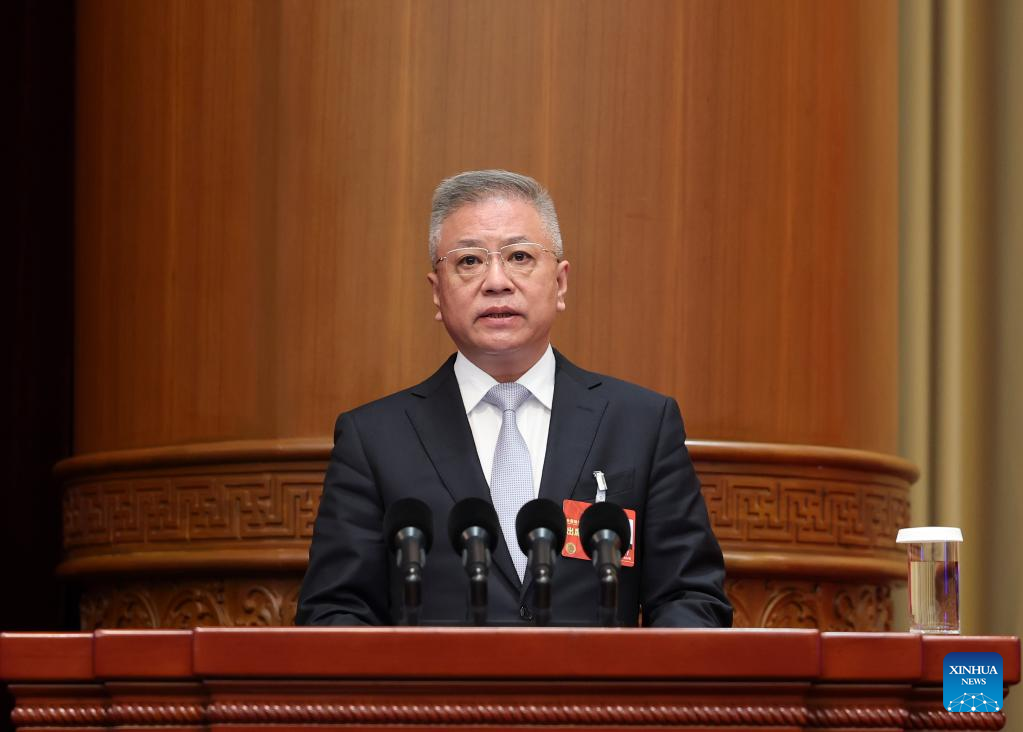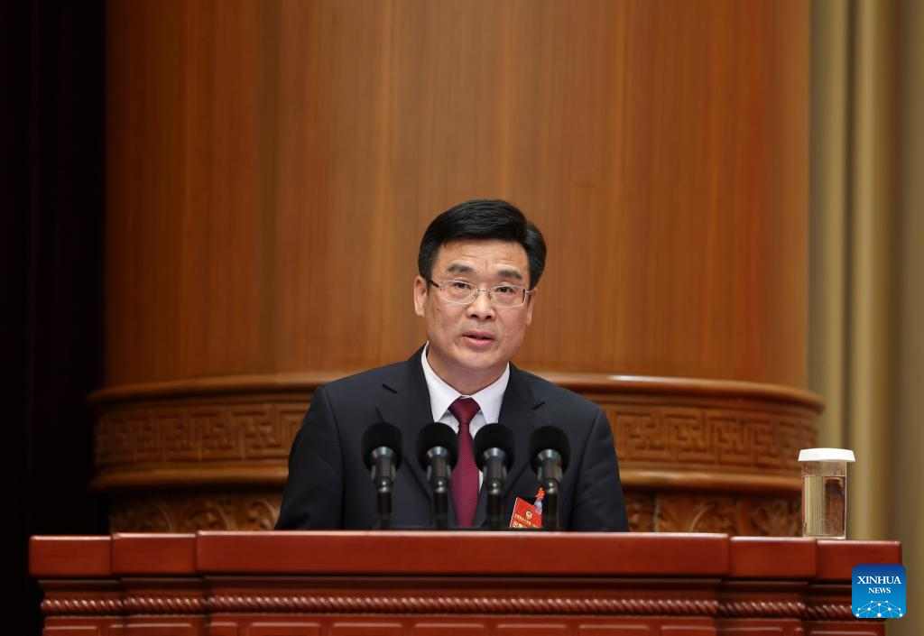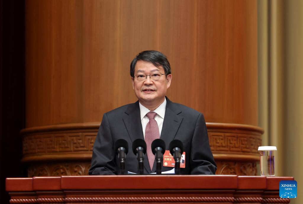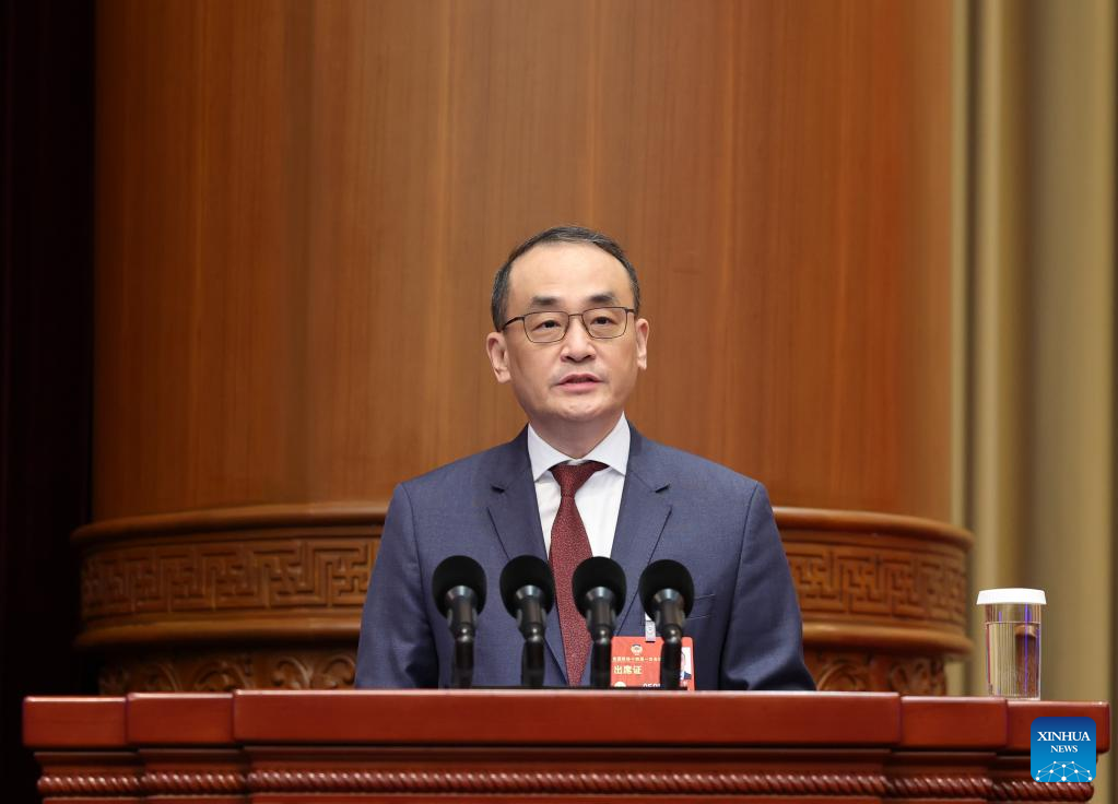 Ji Hongzhong, a member of the 14th National Committee of the Chinese People's Political Consultative Conference (CPPCC), delivers a speech at the main venue of a video conference of the first session of the 14th CPPCC National Committee in Beijing, capital of China, March 9, 2023. (Xinhua/Ding Haitao)