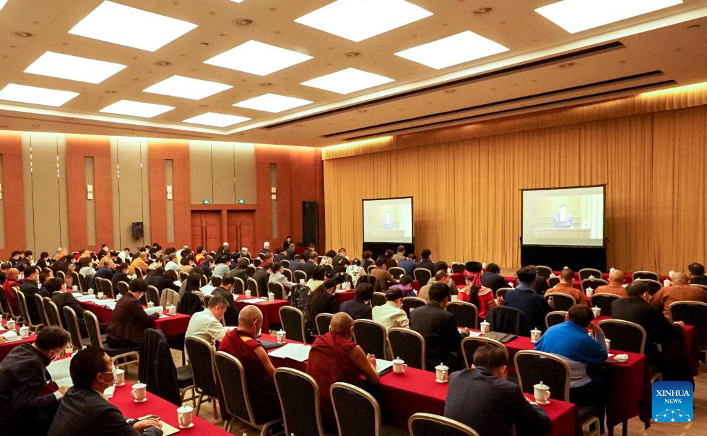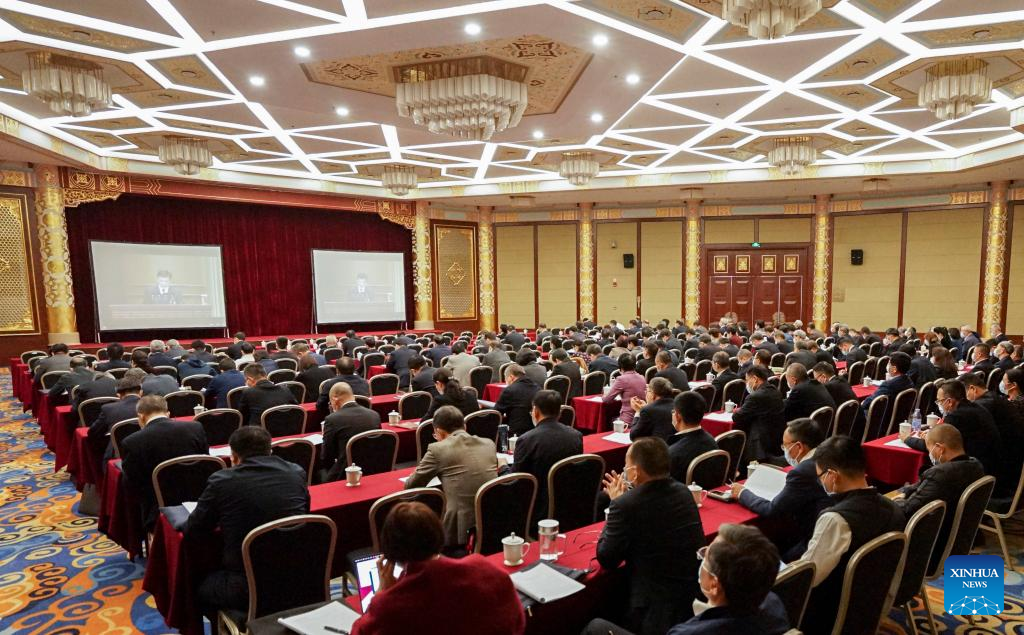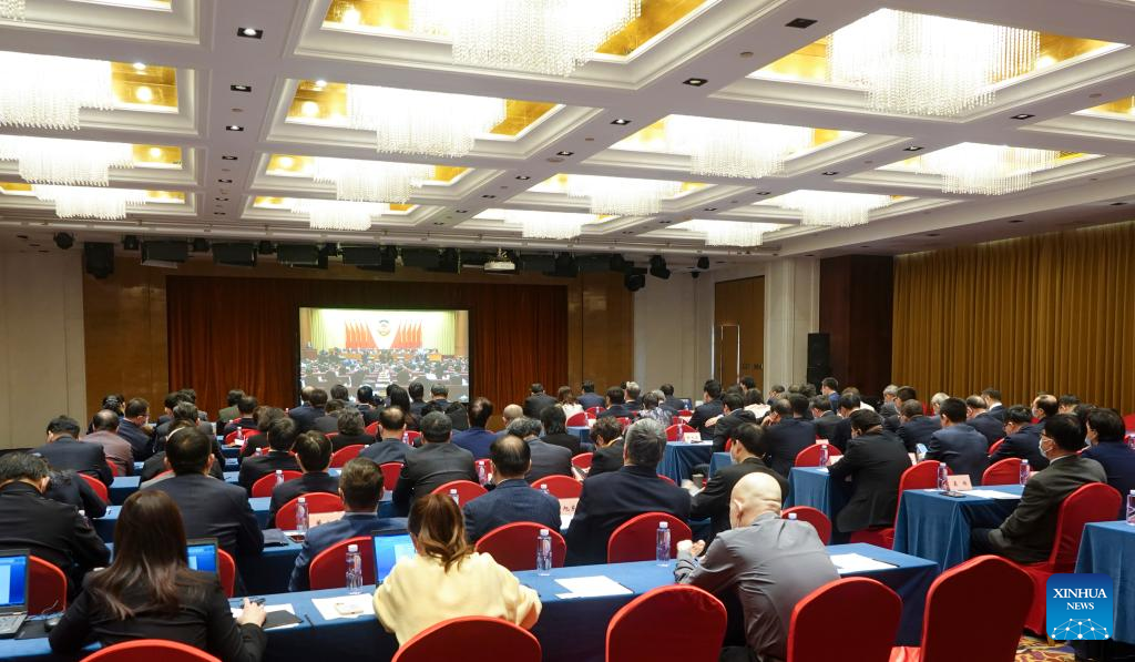 This photo taken on March 9, 2023 shows a branch venue of a video conference of the first session of the 14th National Committee of the Chinese People's Political Consultative Conference (CPPCC) in Beijing, capital of China. (Xinhua/Shi Yucen)